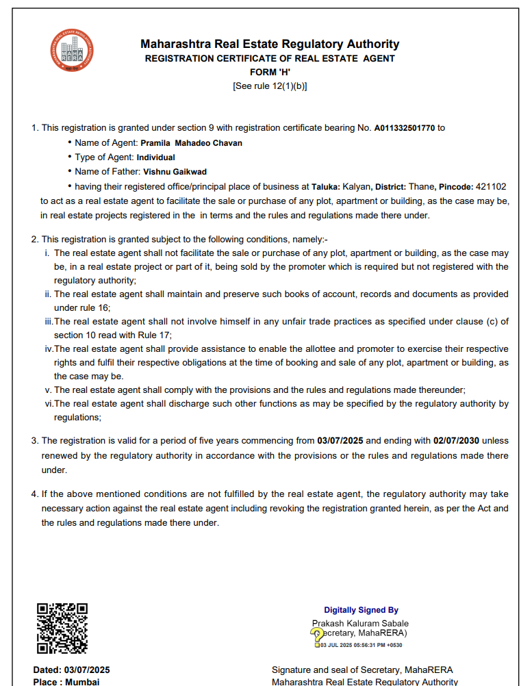 Our MahaRera Registration Number A011332501770